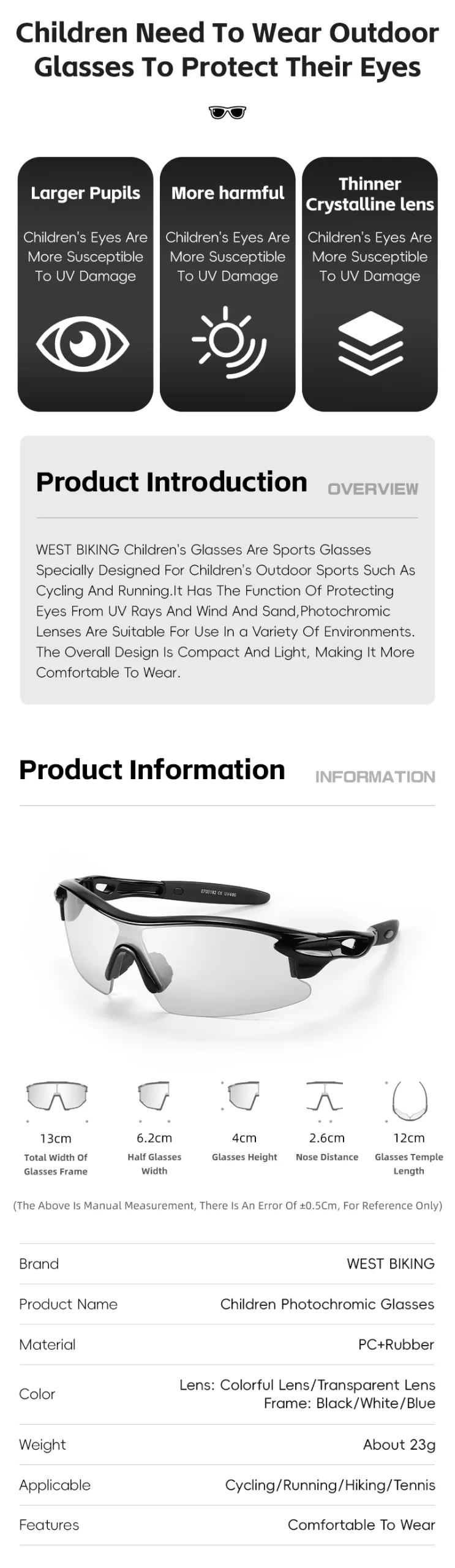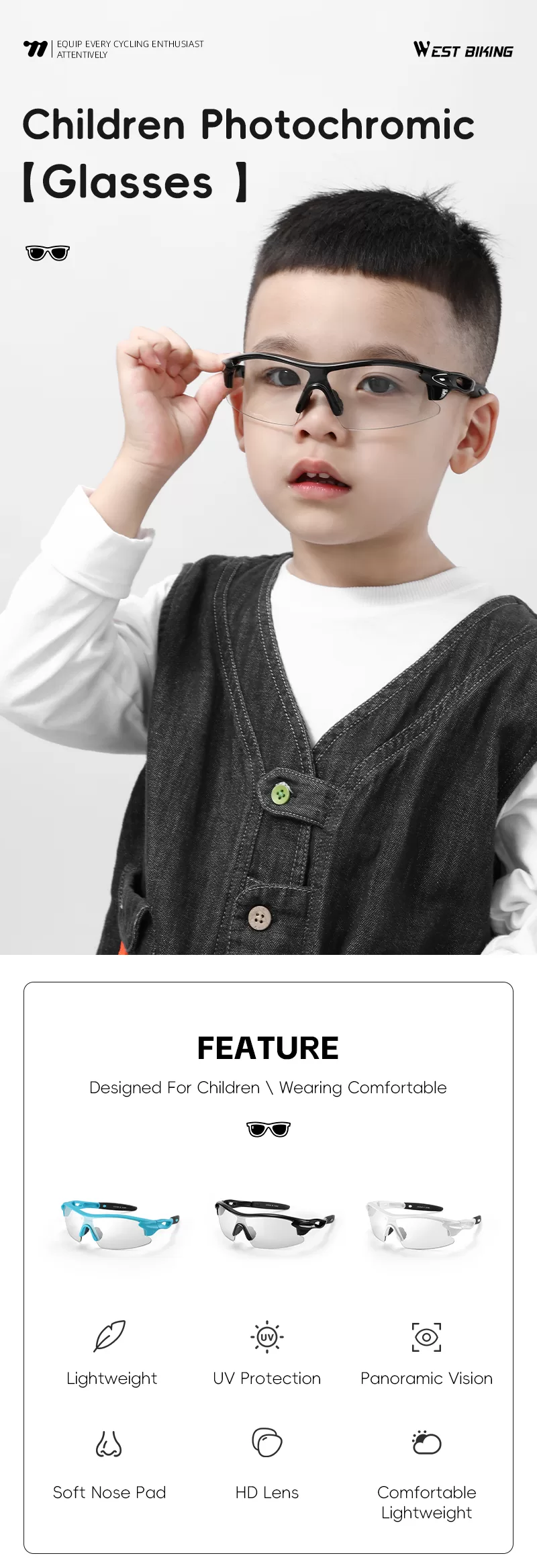 WEST BIKING Children UV400 Protection Photochromic Sunglasses