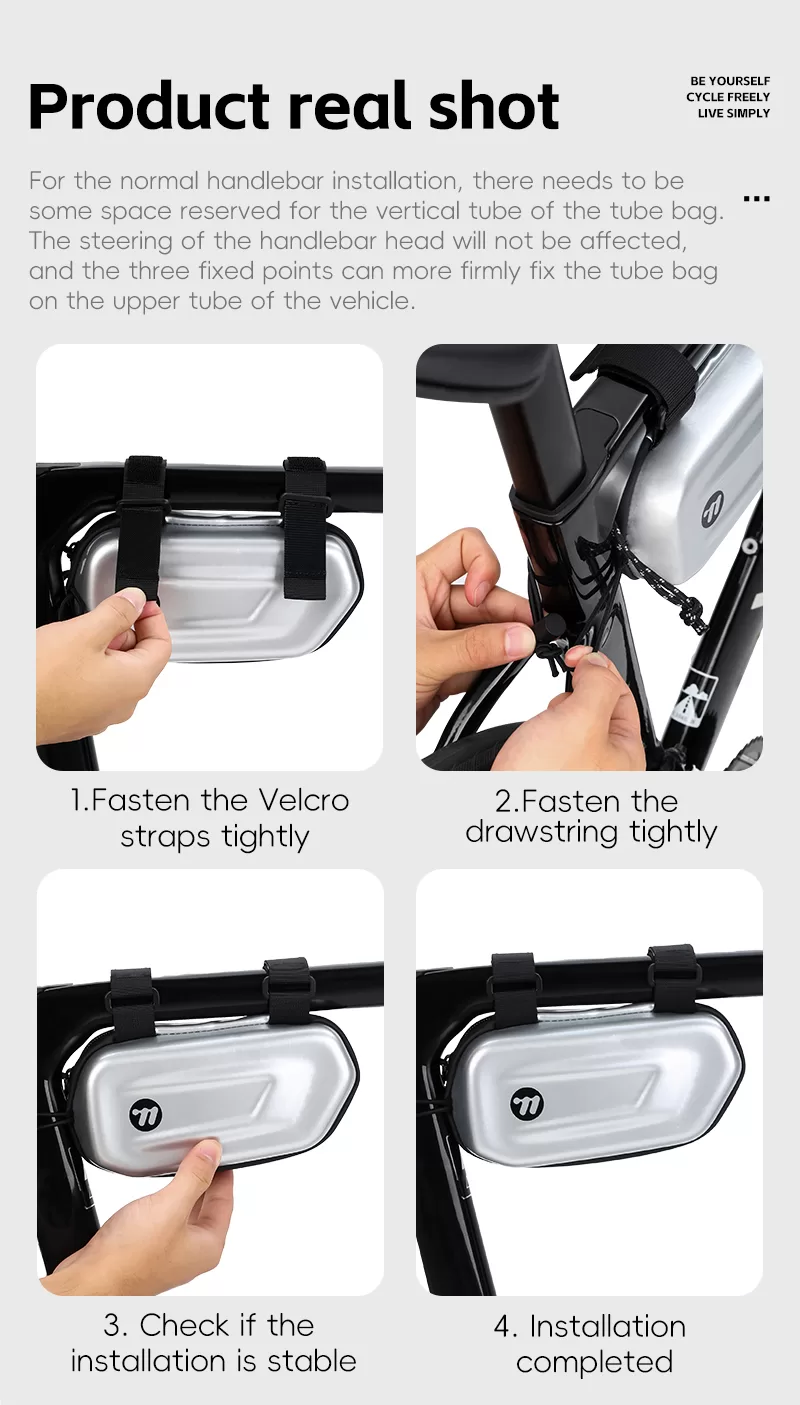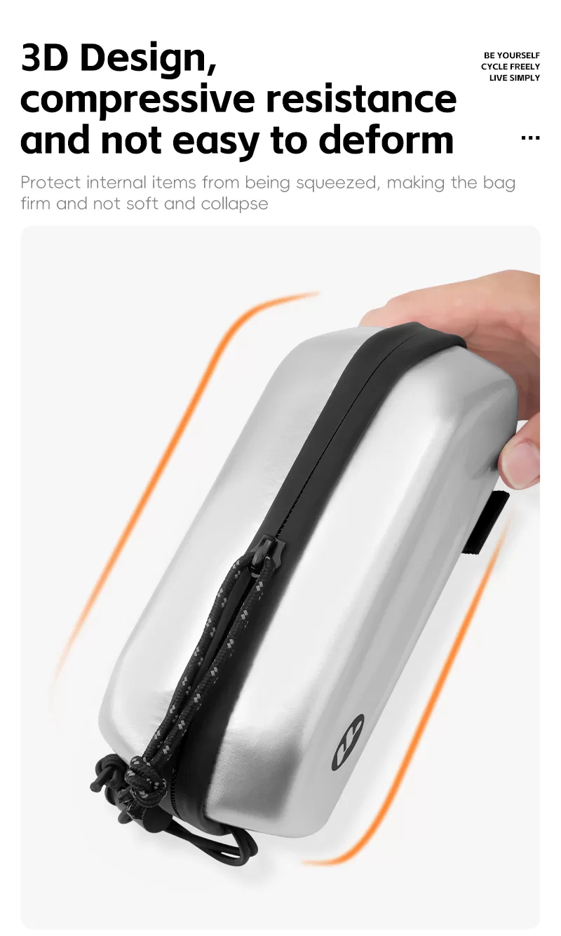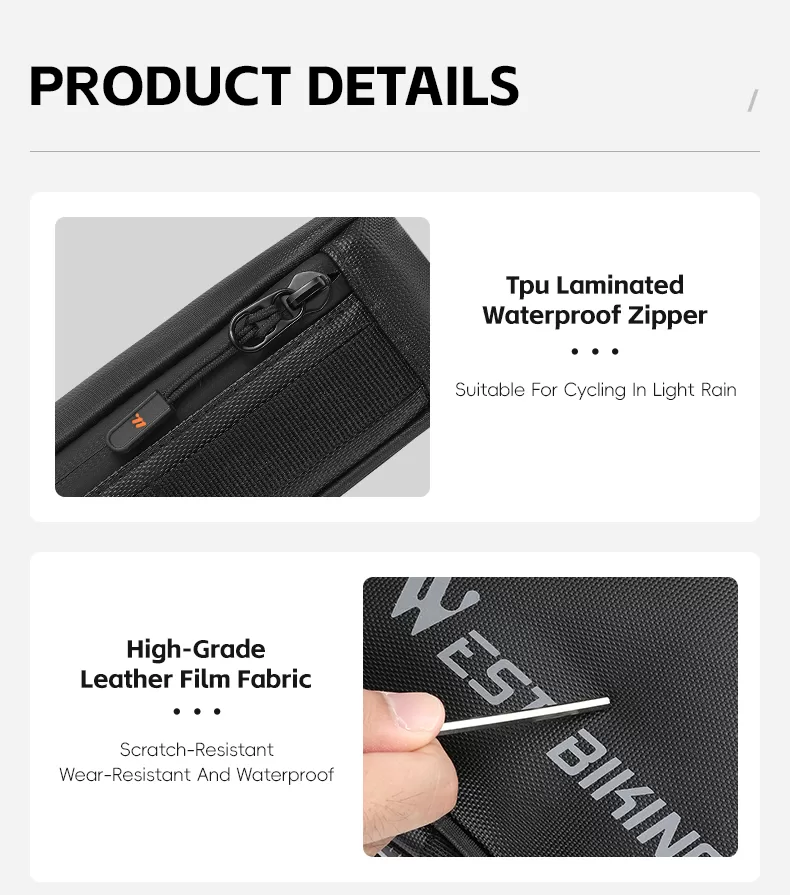 WEST BIKING Bicycle top tube bags, crafted from waterproof TPU material, boasts enhanced water resistance. They can be secured either with Velcro straps or directly fixed to the bike frame using screws. Moreover, the aerodynamic design effectively reduces wind resistance, while the internal support panel ensures the bag retains its shape and stability.