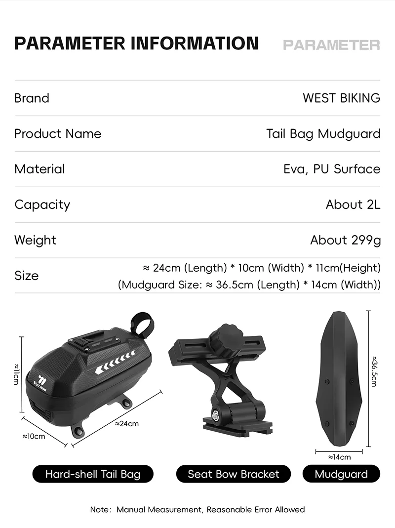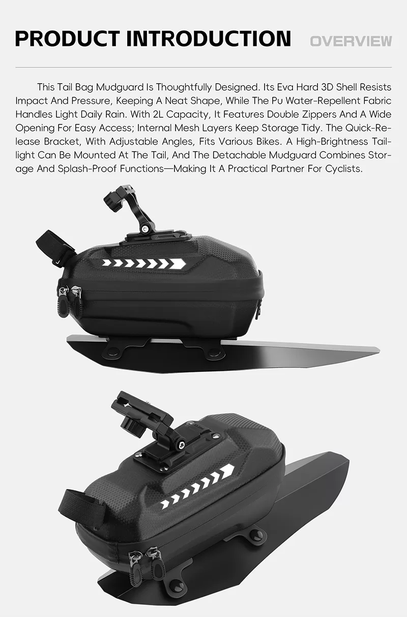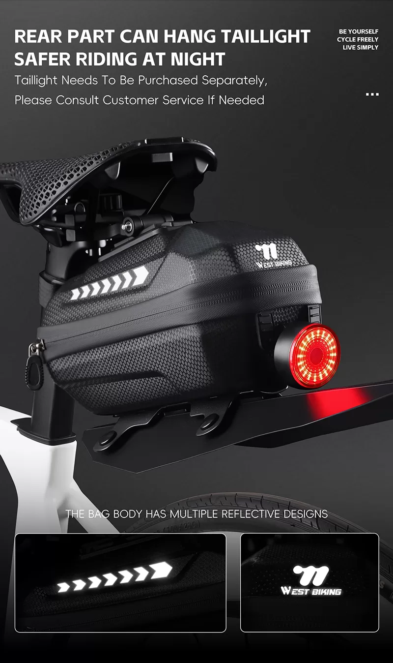 WEST BIKING Bicycle Rear Bag with Fender https://www.beaverbike.ca/product/west-biking-bicycle-rear-bag-with-fender/?utm_source=rss&utm_medium=rss&utm_campaign=west-biking-bicycle-rear-bag-with-fender https://www.beaverbike.ca/product/west-biking-bicycle-rear-bag-with-fender/#respond Fri, 29 Aug 2025 10:03:32 +0000 https://www.beaverbike.ca/?post_type=product&p=6587 WEST BIKING Tail Bag with Mudguard ls Thought fully Designed. Its Eva Hard 3D Shell Resists lmpact And Pressure, Keeping a Neat Shape, While The Pu Water-Repellent FabricHandles Light Daily Rain. With 2L Capacity, lt Features Double Zippers And A Wide Opening For Easy Access; Internal Mesh Layers Keep Storage Tidy. The Quick-Re-lease Bracket, With Adiustable Anales, Fits Various Bikes. A High-Briahtness Tail-.light Can Be Mounted At The Tail, And The Detachable Mudguard Combines Storage And SplashProof Functions-Making lt A Practical Partner For Cyclists.