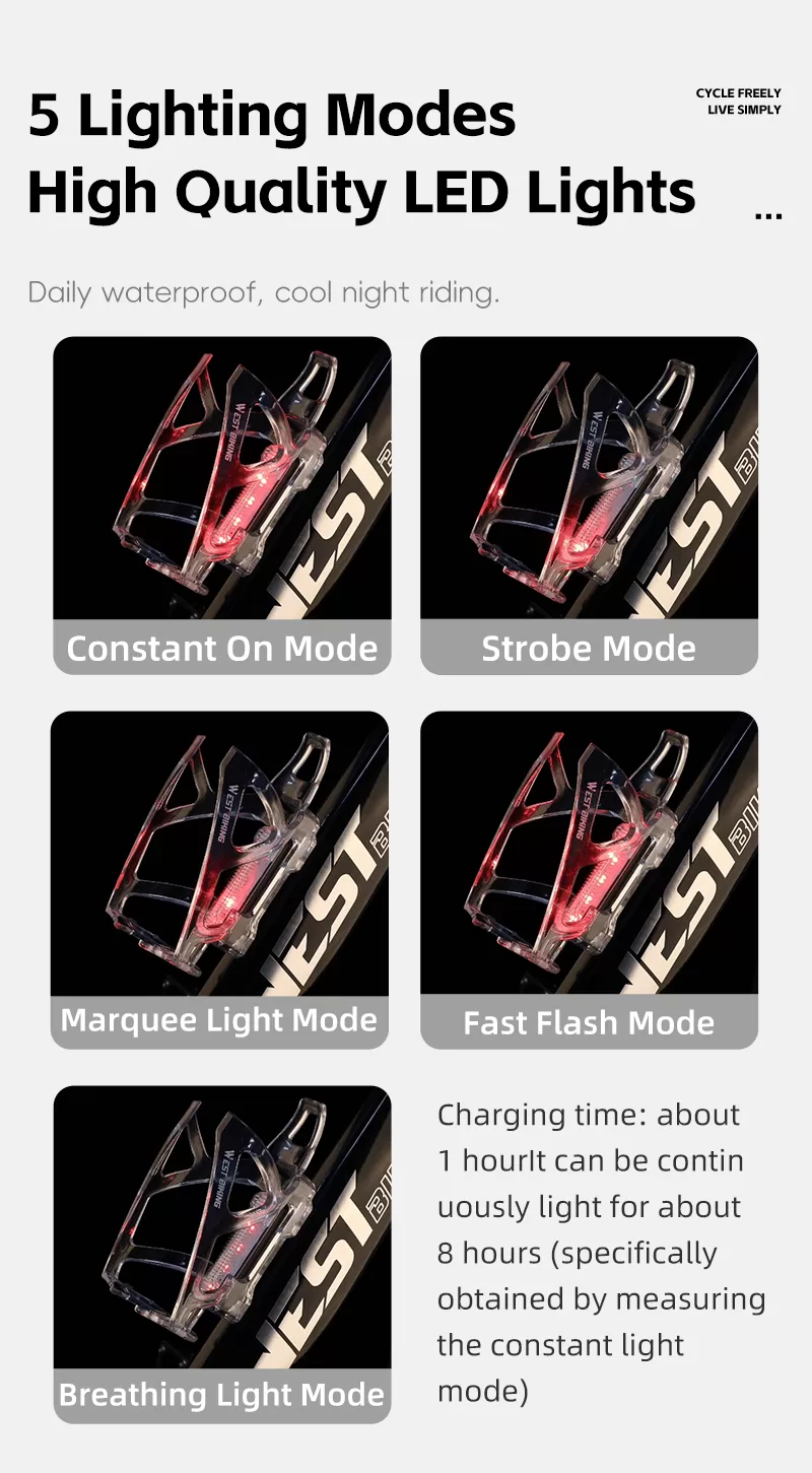 The post WEST BIKING Water Bottle Cage with Warning Light Design first appeared on BeaverBike.