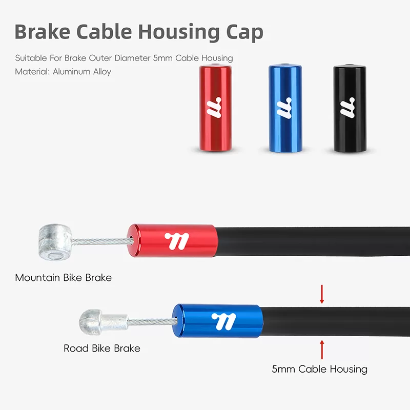 WEST BIKING Aluminum Alloy Brake Shift Cable Housing Caps. They are produced via CNC Machining, featuring a lightweight design. Moreover, they undergo an anodizing process and come in multiple colors for selection.