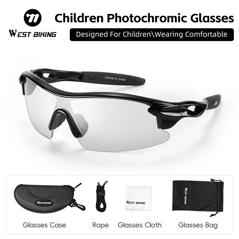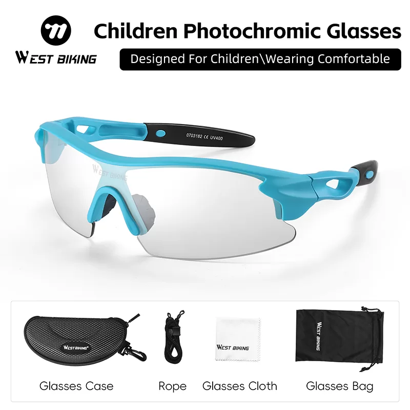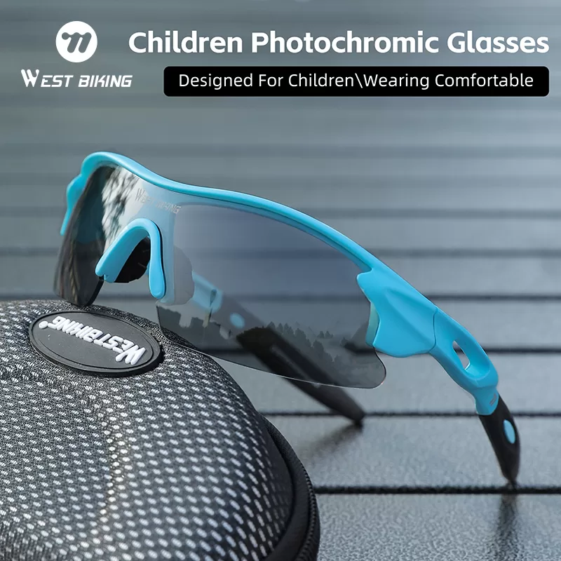 WEST BIKNIG Children’s glasses are sports glasses, specially designed for children’s outdoor sports such as cycling and running. They can protect eyes from UV rays, wind and sand. The photochromic lenses are suitable for use in various environments. With a compact and lightweight overall design, they are more comfortable to wear.
